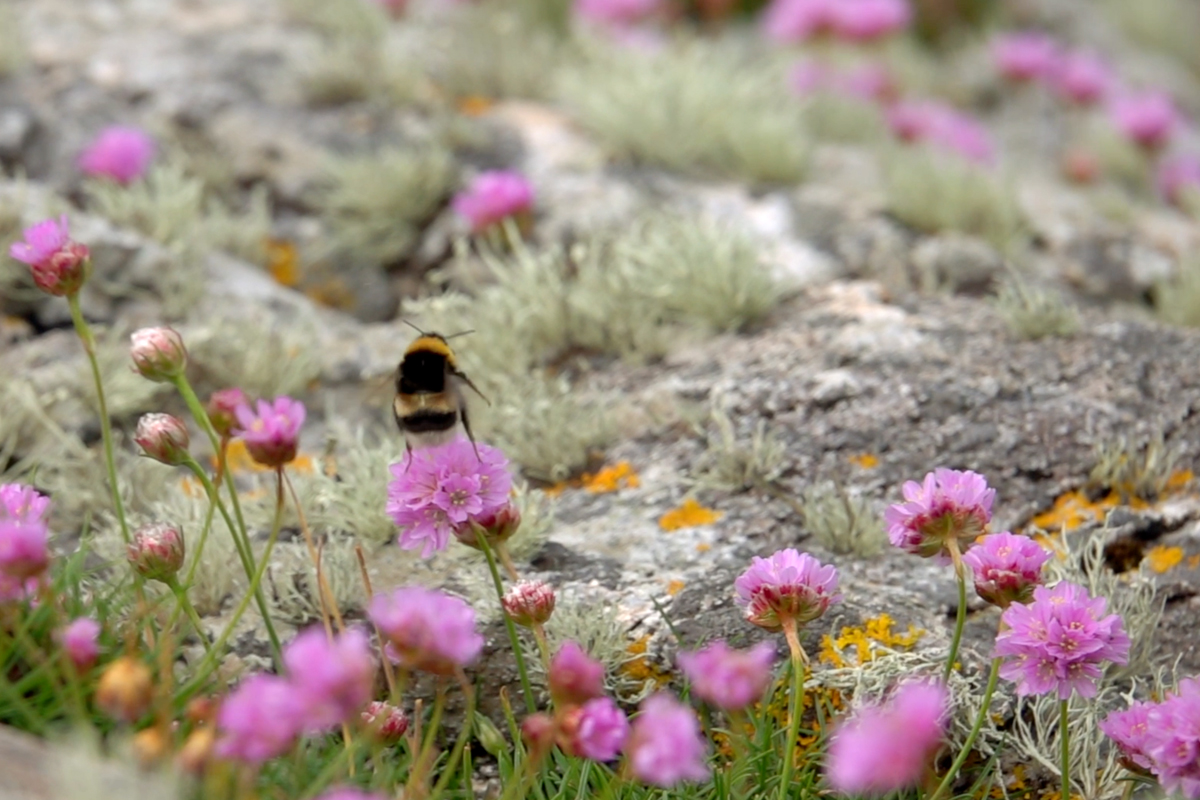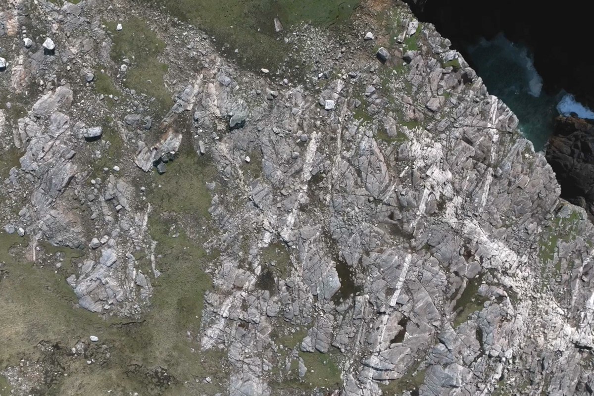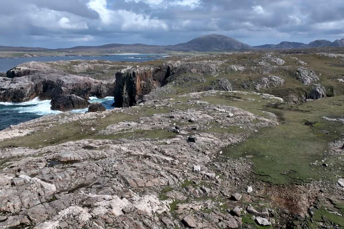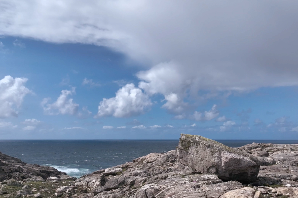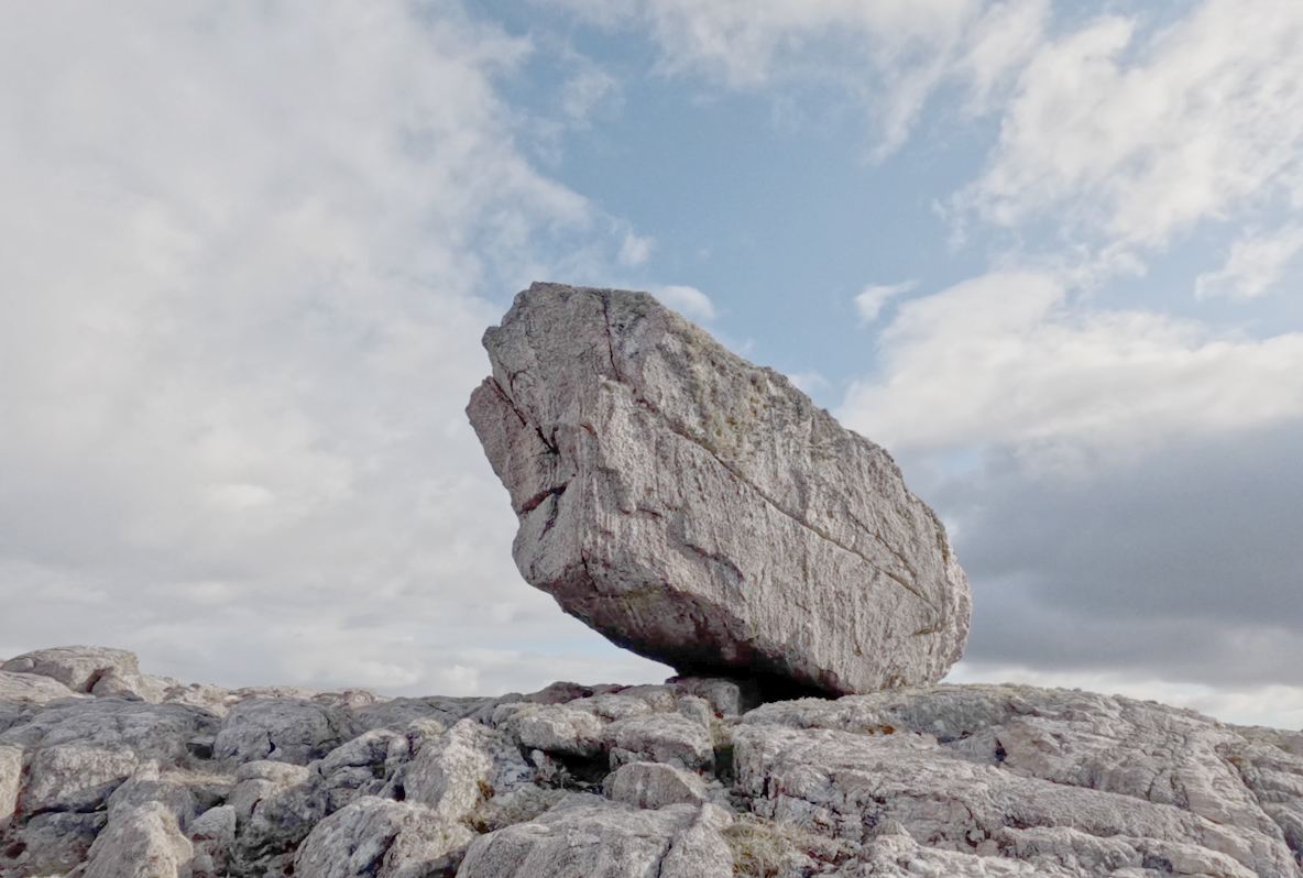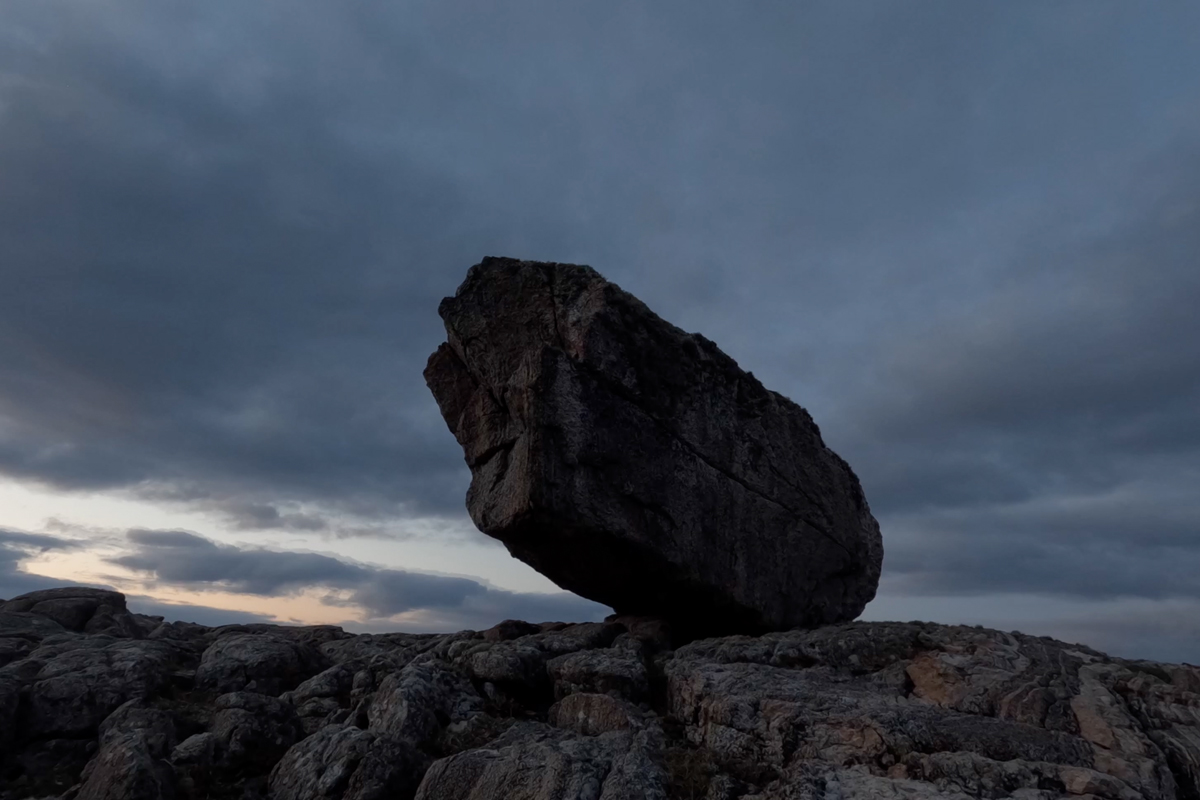 Stone Diary is a short film revealing a day (16th of May 2023) in the life of a three-billion-year-old boulder in the Outer Hebrides of Scotland. The stone and its surrounding bedrock are comprised of 3,000,000,000-year-old Lewisian Gneiss, one of the oldest rocks on earth. Unimaginable elemental forces were enacted upon it, metamorphic influences of extreme volcanic heat and intense pressure changed its chemical and mineral makeup, fusing quartz, feldspar, and mica. Later, a long period of entrapment in a kilometre thick glacier ice sheet, relocated it to its present suspended location. It has witnessed, cataclysmic extinction events, violent hurricanes, eclipses of the sun, spectacular auroras, encasement in a mountain of ice, visitations by plants, lichens, mosses, animals, and birds. Yet still its sits, patiently absorbed in time.